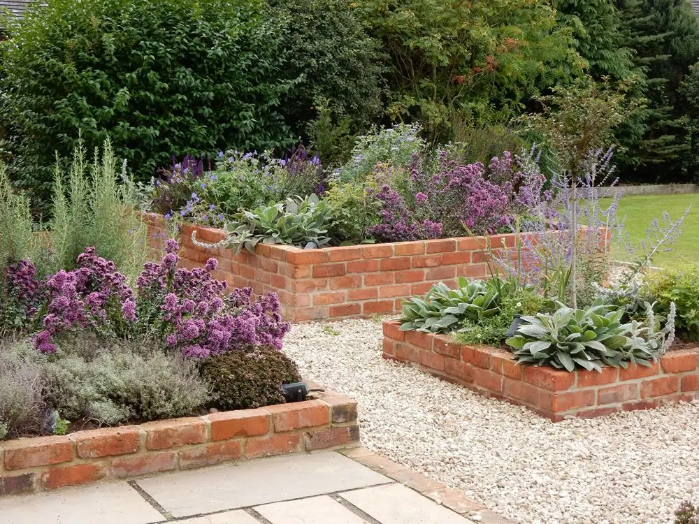 Tady jde o užitkové záhony, které jsou zároveň okrasné. Bylinky doplněné trvalkami. (charlottebertenshaw.pinterest.uk)