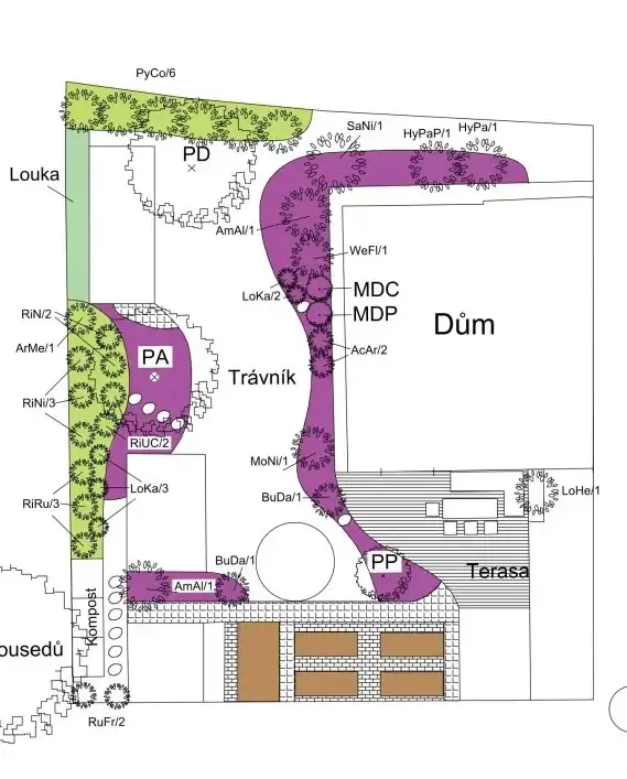 Nejprve Vám načrtnu koncept, kde budou rozmístěny jednotlivé prvky zeleně, zakresleny tvary záhonů i zpevněné plochy a trávník. Tento koncept posílám k připomínkování a doplnění.