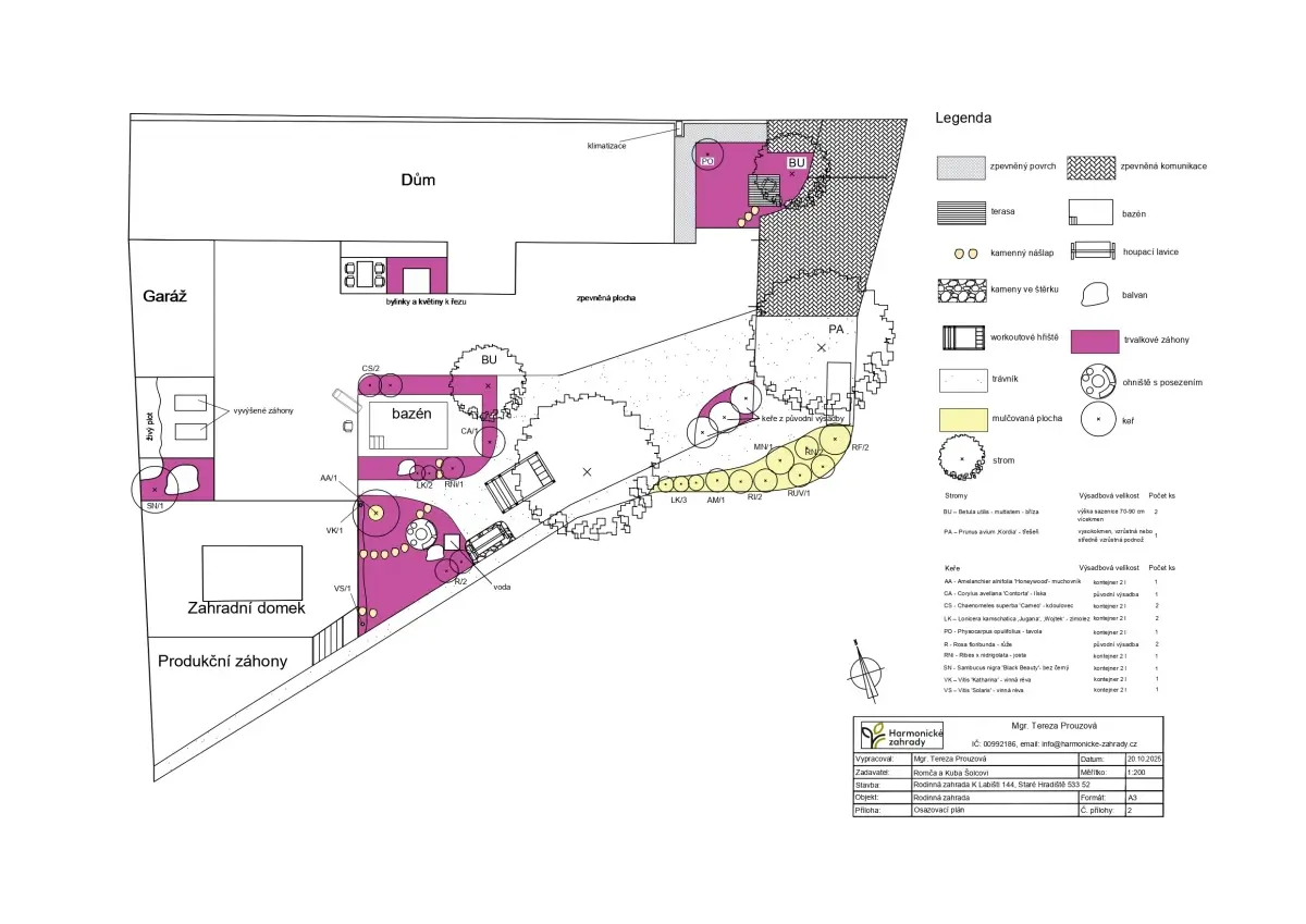 Návrh části trvalek do záhonů laděných ve fialovo bílé kombinaci